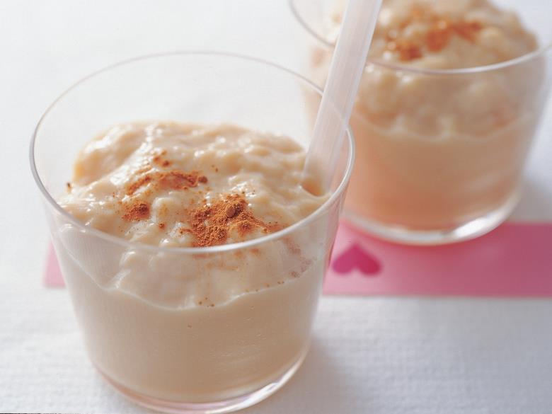 用茶葉泡的紅茶依喜好加入牛奶和赤藻糖醇顆粒,做成茶凍。冷卻凝固以後攪碎,撒上少許肉桂增添香味。