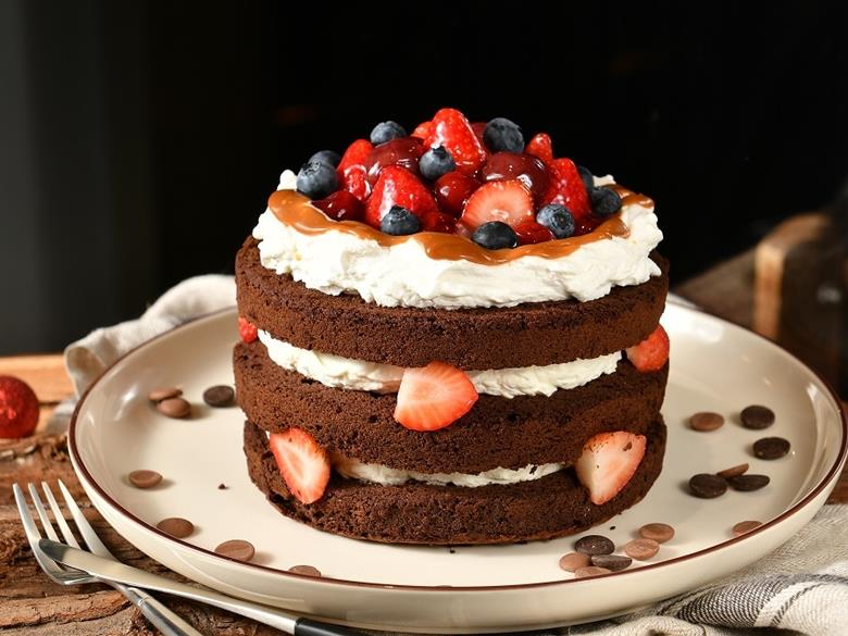 Breeze Super微風超市的「花之馨伯爵茶裸蛋糕」將綿密蛋糕體與草莓交互堆疊打造出扎實的母親節蛋糕。(圖片來源:微風廣場提供)