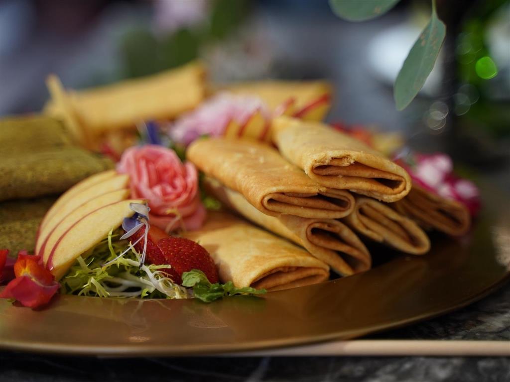 法式可麗卷包的皆是台式內餡,以新的型態推動台灣本土的豬肉鬆、茶葉、花生。(羅璿 攝)