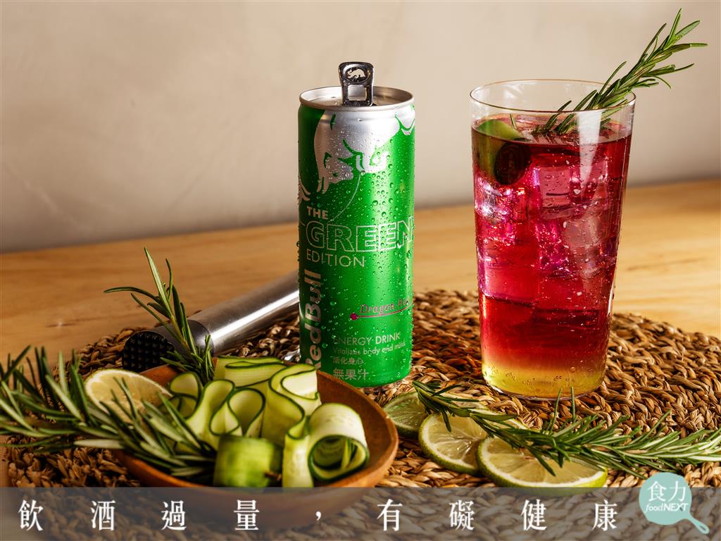 Red Bull Green Edition也適合與琴酒、接骨木混搭製成調酒。(圖片來源:Red Bull提供)