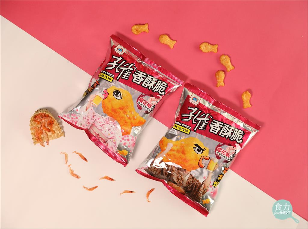 孔雀香酥脆的獨特魚形餅乾體,是以高溫膨發技術製作,不經過油炸步驟,因此吃起來酥脆而不油膩,搭配獨家調味料包裹,讓整體餅乾吃起來鹹甜酥脆。新口味的靈魂「櫻花蝦」,讓每一口孔雀香酥脆吃起來都帶有滿滿的櫻花蝦香氣,直接吃就超美味,拿來配飲料看影集、當下酒小菜配聊天話題,則更是有滋有味,甚至還能撒在炒菜上,作為增添口感的可愛裝飾,美味又實用!