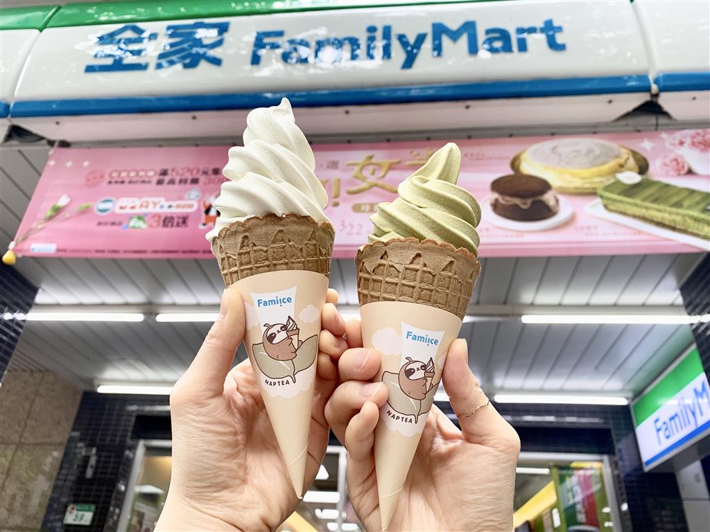 「再睡5分鐘」聯名焙茶麥麥霜淇淋,於全家約1300間Fami!ce霜淇淋單口味店舖販售,入口帶有濃郁的大麥香氣,尾韻淡淡飄出焙茶特有的穀物香氣,層次感豐富;另有約700間Fami!ce霜淇淋雙口味店舖則販售「四季金萱霜淇淋」、「棉被厚奶蓋霜淇淋」及綜合口味「棉被四季金萱霜淇淋」,四季金萱入口後茶香撲鼻,茶的微苦澀讓體清爽不膩口,搭配「再睡5分鐘」經典招牌厚奶蓋製成的棉被厚奶蓋霜淇淋,濃郁奶香帶點鹹甜的奶蓋與四季金萱茶完美結合,令人愛不釋手。