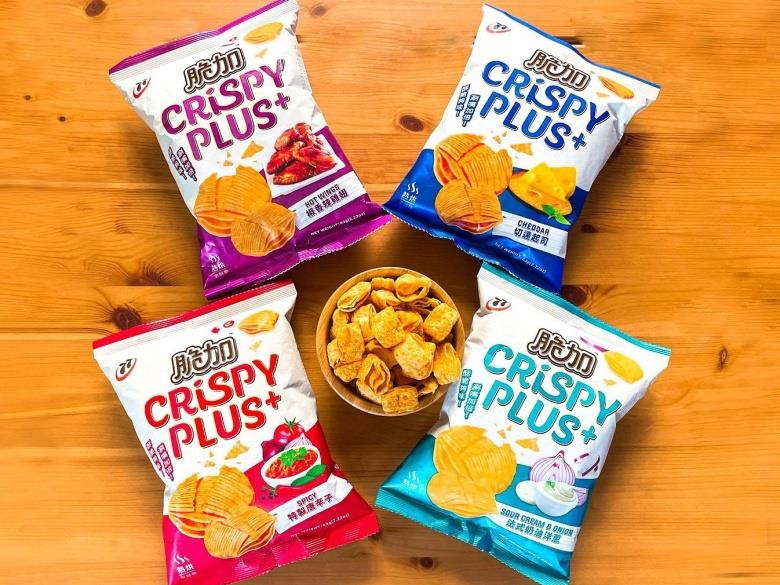 宏亞77除了經典零食「77乳加」外,近期也推出四款四層玉米餅「脆加」,運用特殊熱烘技術,成份使用國產蓬萊米,並有「椒香辣雞翅」、「法式奶油洋蔥」等四種口味。