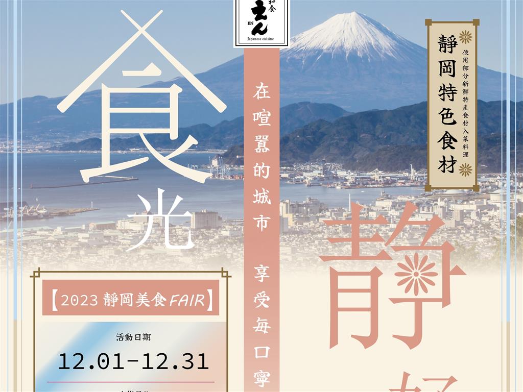 靜岡中部聯攜中樞都市圏偕同日本BYO餐飲集團合作,自2023年12月1日開始,於旗下餐廳「和食EN」、「壽司.和食EN」及「鶿克米」舉辦「食光靜好・靜岡美食FAIR」活動。