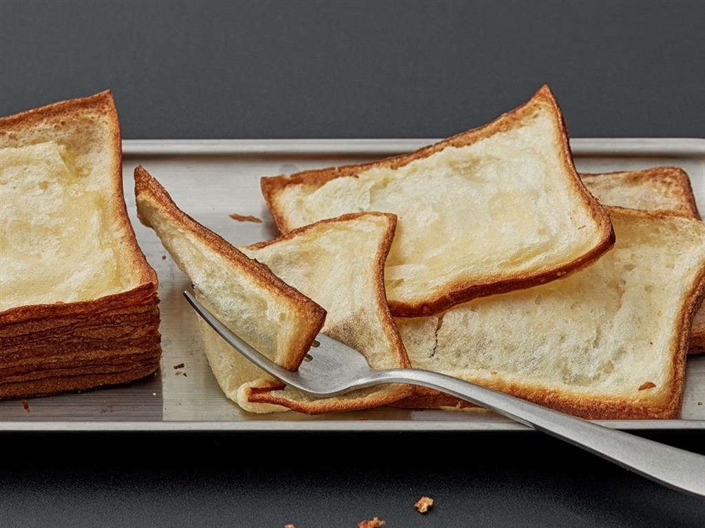來自首爾的The Truffle Bakery招牌商品紙巾吐司,層層撕開薄可透光。(圖片來源:台北晶華酒店提供)