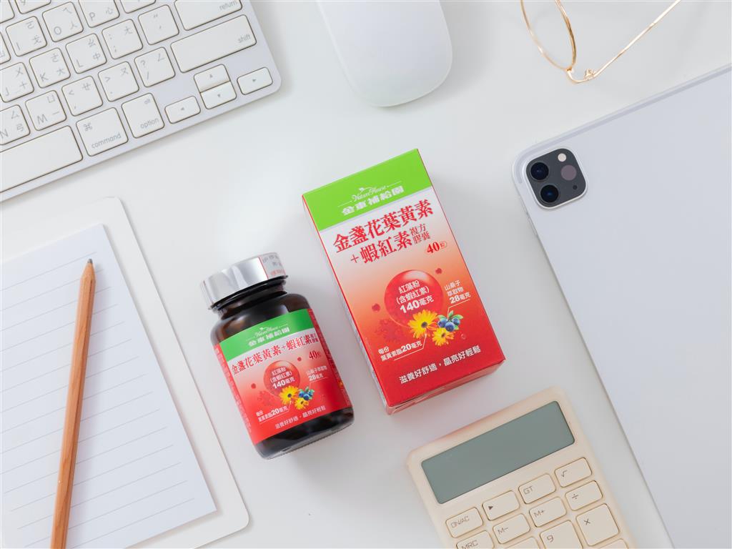 金車補給園的「金盞花葉黃素+蝦紅素複方膠囊」,專為3C族設計的保健食品,無論是上班族、考生、追劇或電競族都可以安心食用,一日一粒加強晶亮保健。(圖片來源:金車補給園提供)