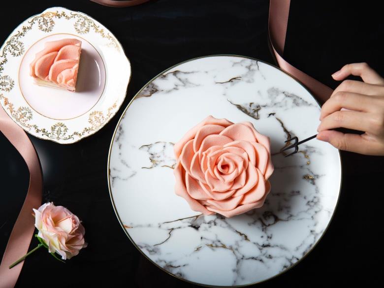 超浪漫唯美的「粉紅凡爾賽」綴上盛開的粉色玫瑰就像戀人心花朵朵綻放,不僅閃瞎眼還能嚐到甜甜愛意,舌尖留下的清淡莓果香更像戀情中必備的酸甜情趣,蛋糕內層由溫柔香軟的香草戚風蛋糕組成,綿密鬆軟中包裹著清爽迷人的覆盆子果醬與手工醃漬櫻桃內餡,交織出愛情的各種美妙滋味,最適合送給戀人示愛表真情!