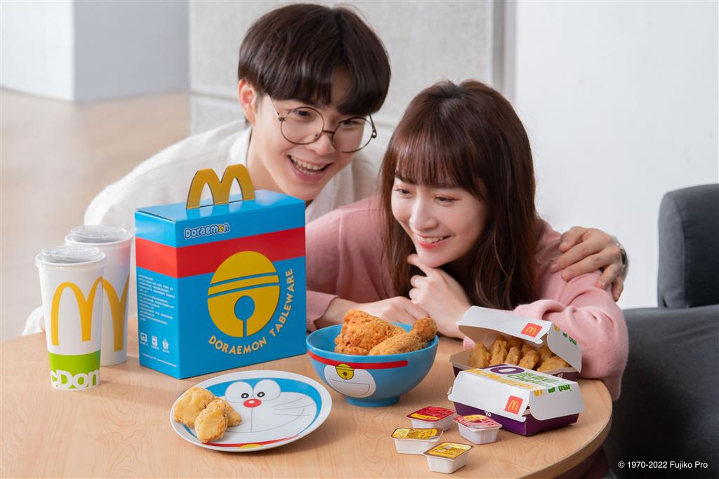 人氣漫畫《哆啦A夢》在台灣民眾心中擁有無可撼動的地位。2022年春節前夕,台灣麥當勞將再次與50年來不退流行的國際品牌《哆啦A夢》攜手,推出「哆啦A夢-經典陶瓷碗盤組」,自2022年1月20日上午11時起至2月15日止(或售完為止),凡於餐廳內或得來速購買任何套餐,加價399元或單買429元即可擁有,全台共5萬組,粉絲們趕緊設鬧鐘,讓哆啦A夢農曆新年陪您天天吃大餐!