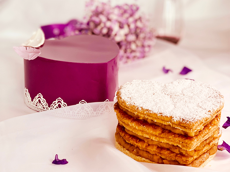 甜點主廚王哲廷發揮巧思,將母親節蛋糕幻化成最美味的驚喜!「層層心意」源自法國的千層酥,傳統上是由3層酥皮搭配兩層鮮奶油,此次主廚顛覆傳統,將培根高溫烘烤出培根油,再以培根油去拌炒焦糖蘋果,並加入白蘭地平衡蘋果酸澀味,製作成甜中帶鹹的香濃內餡,最後撒上香酥培根點綴,搭配上自製的千層心型外皮,一層一層堆疊出對母親滿滿的愛,最後蓋上以巧克力製作的心型外殼,別出心裁的造型與層次分明的獨特口感,帶給媽咪全新的視覺與味覺雙重享受。「玫瑰夫人」以古典優雅的旗袍造型為主軸,贏得母親的目光。蛋糕的風味則是以巧克力慕斯,搭上玫瑰覆盆子奶餡與焦糖杏仁脆片等,多層次的豐富口感與典雅外觀,是適合送給氣質系母親的甜蜜驚喜。