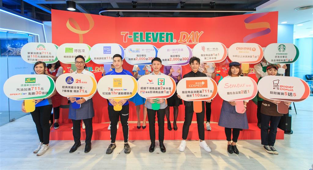「7-ELEVEN DAY」串連統一企業、7-ELEVEN門市、7-ELEVEN線上購物OPEN POINT行動隨時取展開跨平台虛實整合,同時攜手統一麵包、星巴克、Mister Donut 、21世紀等眾多品牌共同參與,線上線下有7000多個通路同時歡慶「7-ELEVEN DAY」。