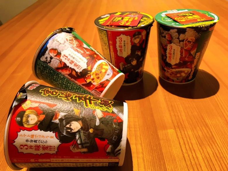 日本知名泡麵品牌「明星」與日前剛完結的《進擊的巨人》展開合作,推出包含醬油杯麵及宮崎辛杯麵兩款聯名包裝。
