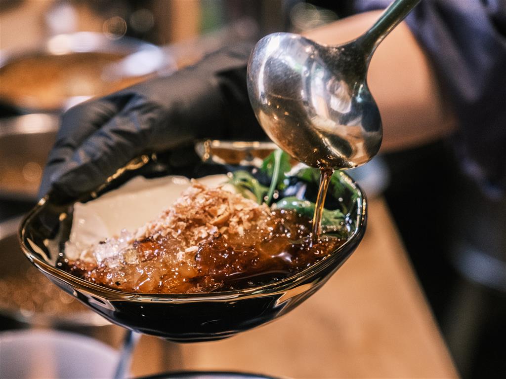 白水豆花使用宜蘭雪山新鮮湧泉製作,遵循古法直火煮漿,豆香味甘甜,掌握精緻濃度與溫度,加入東岸太平洋深層海水作為天然凝固劑,融合山與海的微量元素,做成一碗香滑嫩彈的白水豆花。