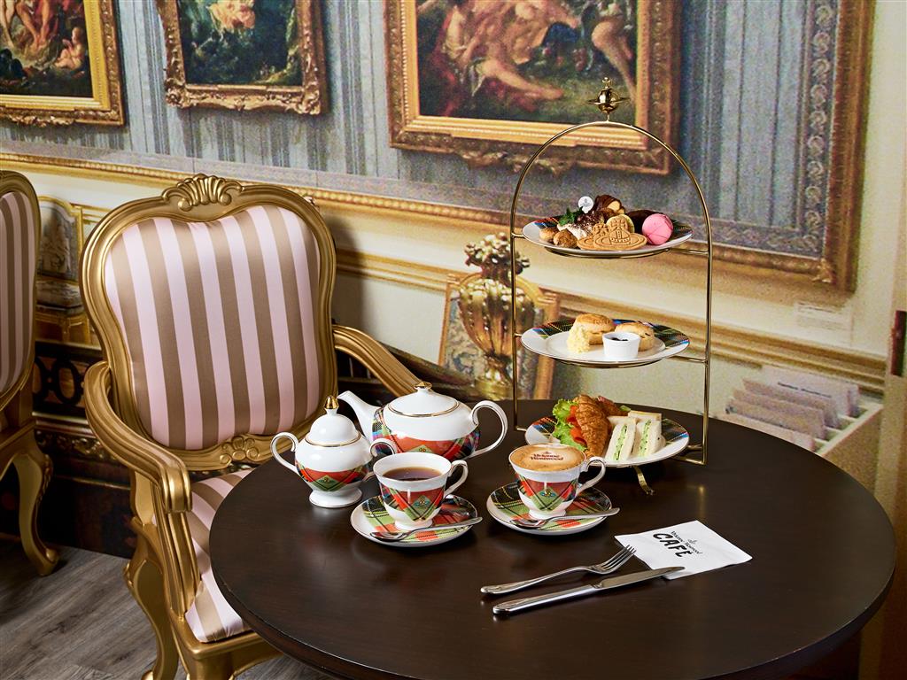 Vivienne Westwood於LaLaport台中店限量推出了經典英式雙人下午茶,不僅有傳統的司康、巴斯克乳酪蛋糕,還有可頌集三明治等鹹點心增加味蕾層次,讓你在台中也能享受英倫休閒風情。