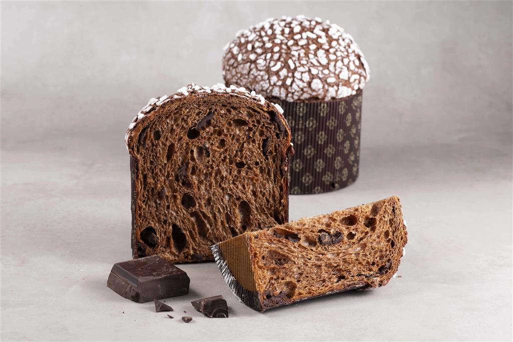 2024年新開發的巧克力潘娜多妮,在原味的基礎之上,不僅加入一顆顆的巧克力豆之外,麵團中也加入了巧克力甘納許,一入口就可以感受到濃濃的巧克力甘甜味。巧克力採用歐洲頂尖品牌法芙娜100%、柯茲70%等3種巧克力,讓麵團本體有純然的巧克力苦甜味,而自製柑橘醬讓風味層次更多元,滋味也更討喜,點綴其間的巧克力豆帶出另一種口感和苦甜層次,讓整顆巧克力潘娜多尼有舒服迷人的巧克力苦甜,舒爽的滿溢唇舌之間,只要嘗了這一顆風味深刻印在腦海中,以往吃過的都將相形失色。