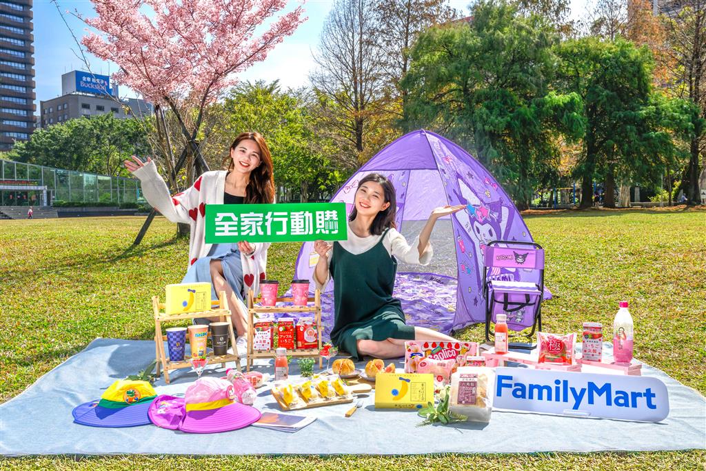 全家便利商店看好賞櫻出遊商機,明星商品化身外拍小道具,在「全家」店外櫻花樹下便可輕鬆拍出夢幻美照,滿足消費者賞櫻出遊的多元需求。