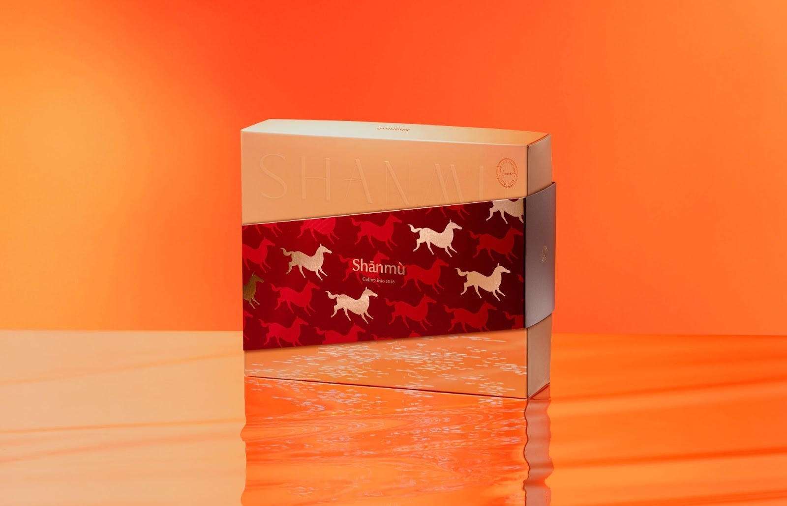 山木島 Shanmu是以台灣土地味道為靈感的糕點品牌,為迎接2026年新年,特別推出以「海平面上的晨曦」為意象的 《金池暖洋》新年禮盒,將初升暖陽映照在金色浪面上的畫面化作禮盒視覺,象徵嶄新的開始與溫潤的祝福。金馬封套奔馳於金浪之上,呈現台灣海線的流動力量,也傳遞山木島一貫的台味美學。