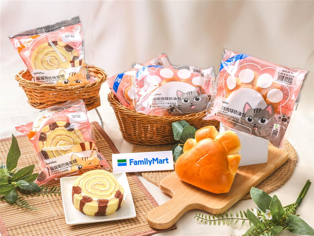 「喵咪肉球奶油包」、「貓貓尾巴捲蛋糕」好吃又可愛,療癒系造型吸睛度十足。(圖片來源:全家便利商店提供)
