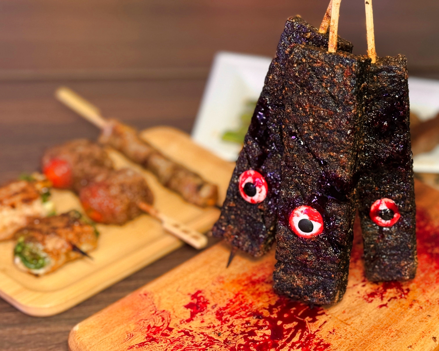 全台連鎖串燒品牌「焦糖楓」為歡慶萬聖節,推出10月31日萬聖節當天,只要姓名內有「ㄨㄢˋ、ㄕㄥˋ、ㄐㄧㄝˊ」的同音字,即可免費獲得「鬼太郎血糕」1串,不僅能享用獨特風味的烤串,還能為萬聖節增添截然不同的樂趣與體驗。