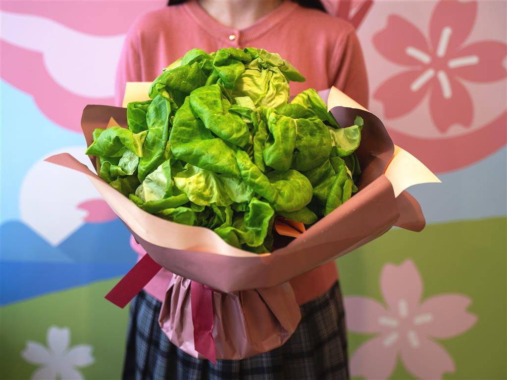 摩斯漢堡推出「奶油萵苣大花束」,每束899元,只需向指定店鋪預訂,將有專人完成精美包裝,完美你的感謝回禮。(圖片來源:摩斯漢堡提供)