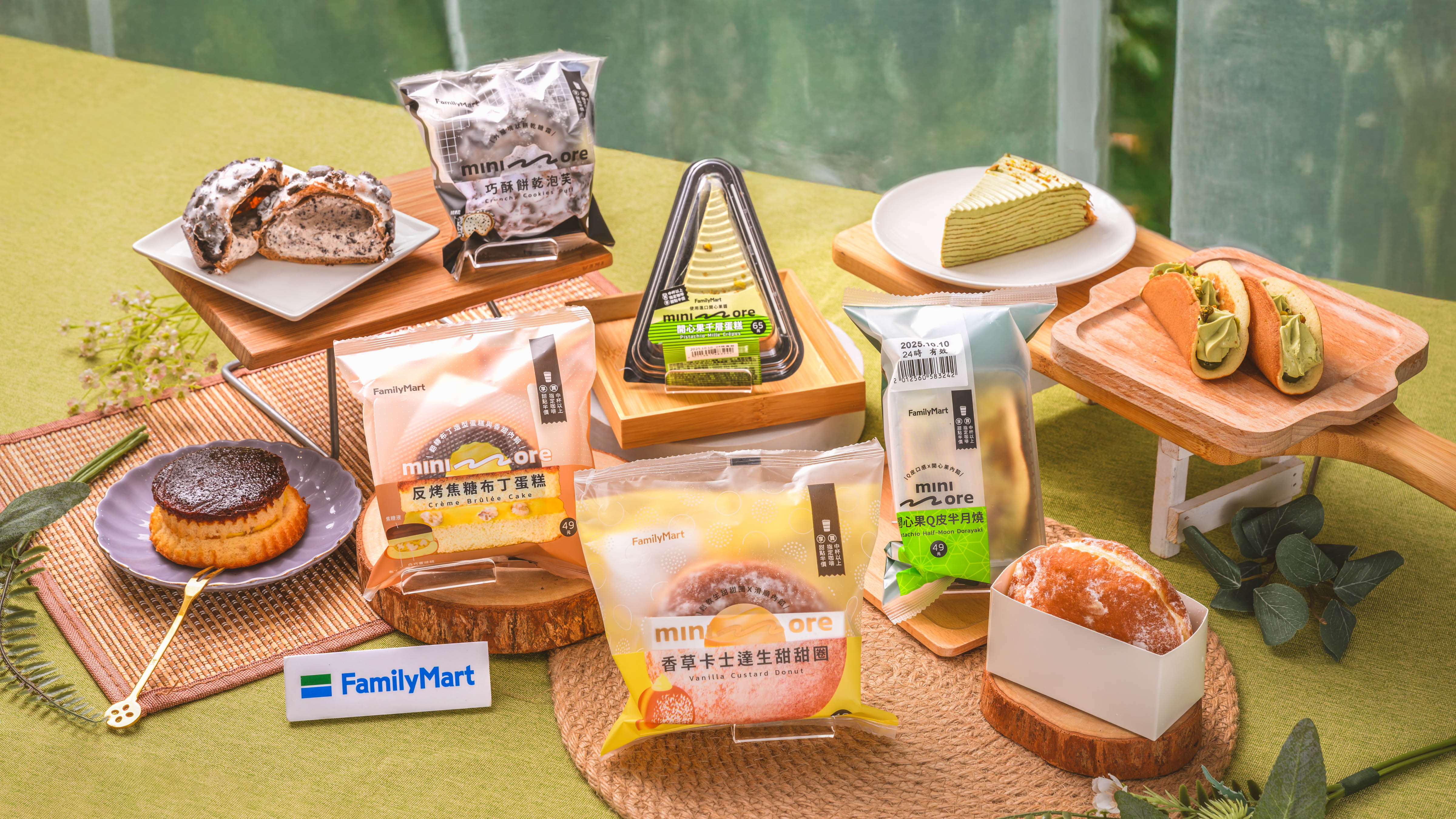 「全家」minimore持續透過日本技術交流與自營甜點產線,打造媲美專賣店水準的美味甜點,此次更將日本爆紅夯品「生ドーナツ」引進便利商店,推出「香草卡士達生甜甜圈」,將蓬鬆彈潤甜甜圈灌入濃郁香草卡士達內餡,濕潤爆餡口感、甜而不膩,只要銅板價49元即可一嚐滋味!更有明亮鮮綠的開心果甜點,推薦「開心果千層蛋糕」,以開心果醬入料製作內餡,細緻堆疊出美味千層,綻放堅果香氣,售價65元;另有「開心果Q皮半月燒」,開心果醬的濃郁內餡搭配Q彈外皮,美味必嚐,售價49元。話題新品「反烤焦糖布丁蛋糕」同樣不容錯過,焦糖醬搭配蛋糕反烤打造誘人色澤,夾入布丁內餡與核桃碎,甜蜜又療癒,售價49元;「巧酥餅乾泡芙」搭載新型態餅乾泡芙外皮,結合巧酥牛奶內餡,香濃甜蜜好滋味,售價49元。