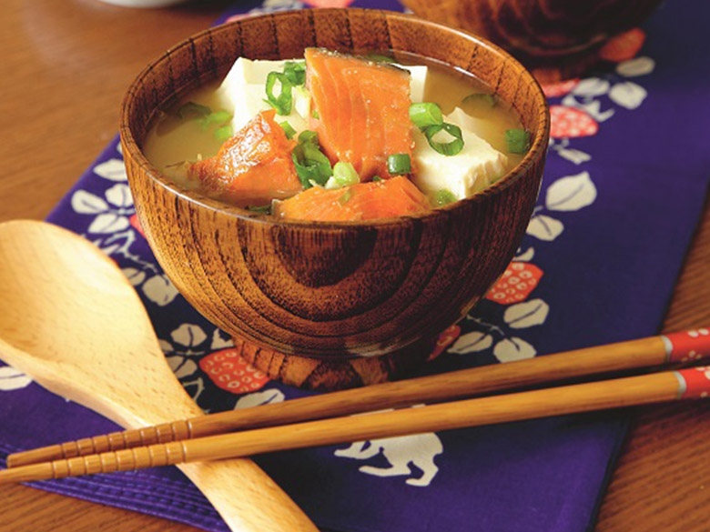 鮭魚先煎一下,能夠帶出其油香,令整碗味噌湯變得更美味