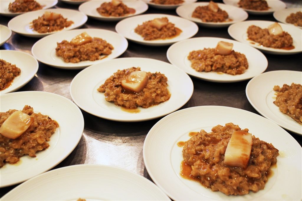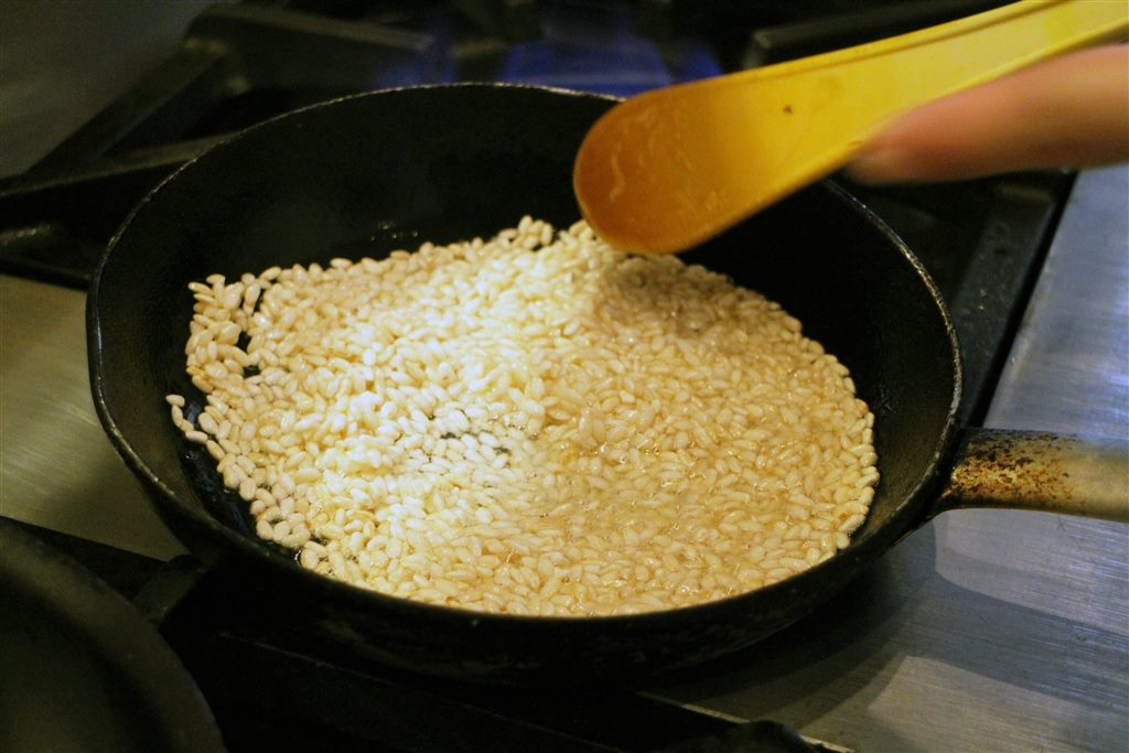 Step 6完成的燉飯以極小火在鍋中保溫,或放在溫暖的烤箱中。
