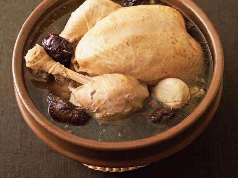 此道人蔘雞湯,若是使用壓力鍋來料理,只須燉煮約四分之一的時間,雞肉就會變得相當軟嫩。