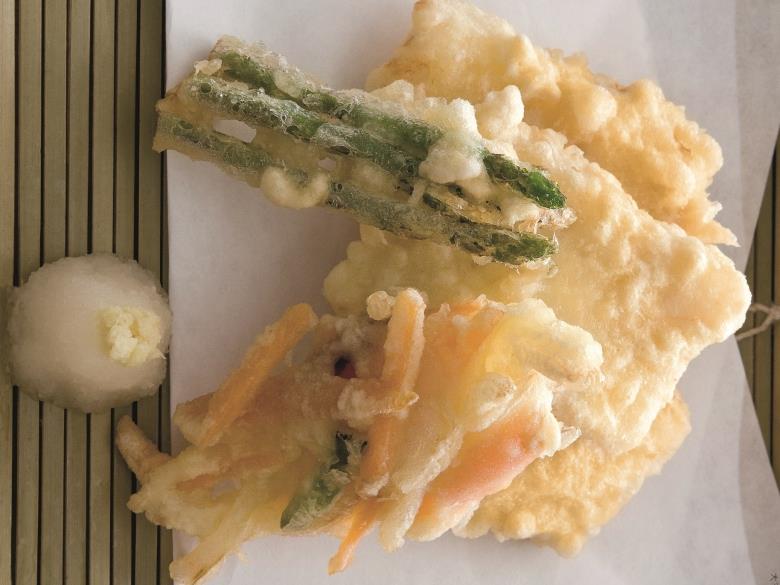 . 將這道菜用圓蓋蓋住,天麩羅因吸收自身散逸的蒸氣與熱氣而變軟。