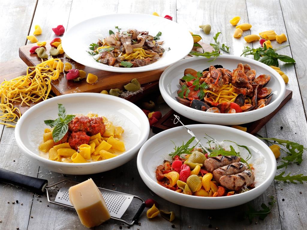 拿坡里坦肉腸鮮茄醬三色貝殼麵。(圖片來源:三澧集團提供)