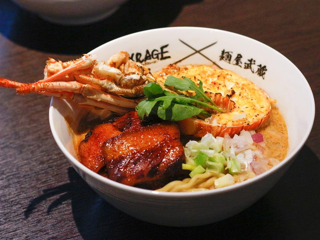 此次跨界聯名主題以「侍」為發想,類似日本武藏濃厚雙湯的風格,內心有著強烈武士魂的限定麵,一場舌尖上的江湖,即將開戰!武x侍龍蝦w拉麵的經典雙湯頭(W Souo)使用大量龍蝦頭熬製而成,碗中的主角「龍蝦雲丹燒」,一上桌那閃閃發光的金黃色澤,真叫人目不轉晴,南美龍蝦肉質清而鮮甜,抹上日本雲丹海膽醬烤至金黃微焦,濃郁獨特的海膽香氣令人著迷,更進一步帶出龍蝦肉的鮮,這極誘人的滋味,令人一試難忘!