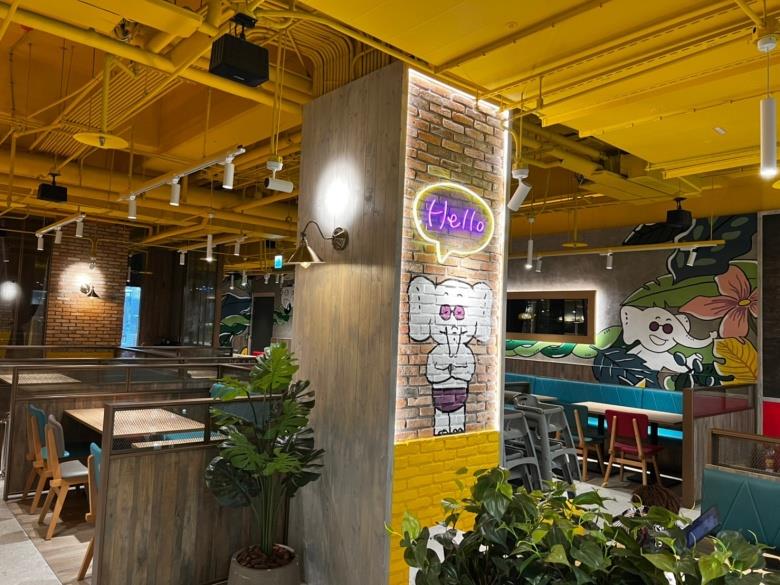 備受大朋友小朋友喜愛,從泰國遠道而來,有點酷有點潮也常戴著墨鏡,生活名言是「就算躺著也要耍帥」的饗泰多靈魂人物「小象哥」,照例在饗泰多第11家分店天母店裡熱情的彈著吉他向天母的好朋友們Say Hello!饗泰多天母店共114坪、156個座位,紅黃藍亮色系的泰國街頭巿集氛圍,歡樂自在。天母店期間限定的「泰烤無骨牛小排」鮮嫩多汁的無骨牛小排,搭配羅望子沾醬,一口咬下香氣四溢,再來點鮮蔬沾蝦辣醬,開胃又下飯。