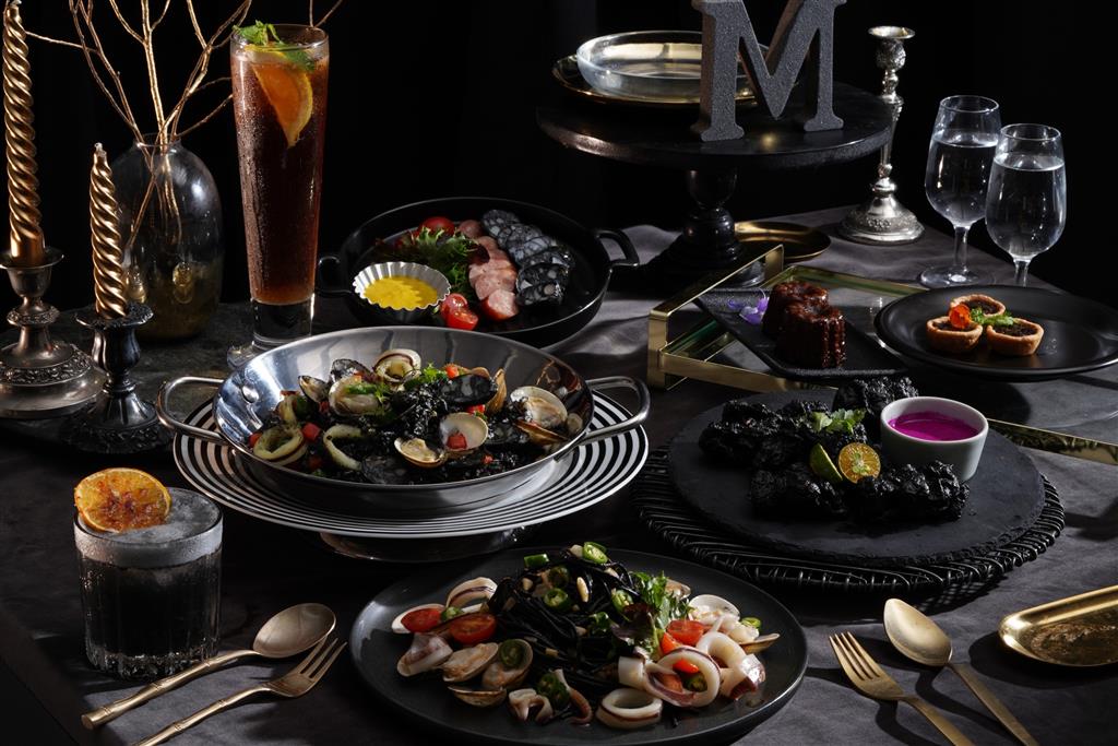 「黑色搖滾套餐」包含一整套從小食、主餐、甜點、飲品的豐富餐點:前菜是以墨魚醬酥炸雞腿肉,搭配酸甜火龍果沾醬的「BLACKPINK炸雞組合」;主餐可選擇米飯吸飽海鮮高湯和墨魚醬汁,並加入墨魚香腸、透抽和蛤蜊,讓鮮上加鮮的「黑潮搖滾宇宙燉飯」,或是選擇醬汁洋溢檸檬葉、香茅的泰式香氣,大海鮮味隨墨魚麵條如海浪般襲來的「黑浪花海鮮義大利麵」;甜點提供可麗露、葡萄塔、巧克力冰淇淋三種選擇;另外,凡點黑色搖滾套餐享半價加購微醺特調「發光黑爵士」或「搖滾黑玫瑰」,前者發想自經典調酒「自由古巴」,清新果香讓人身心輕鬆,後者的玫瑰氣息揉和杏仁、柑橘與黑色蘭姆酒的熱帶果香,散發獨一無二的反差魅力。