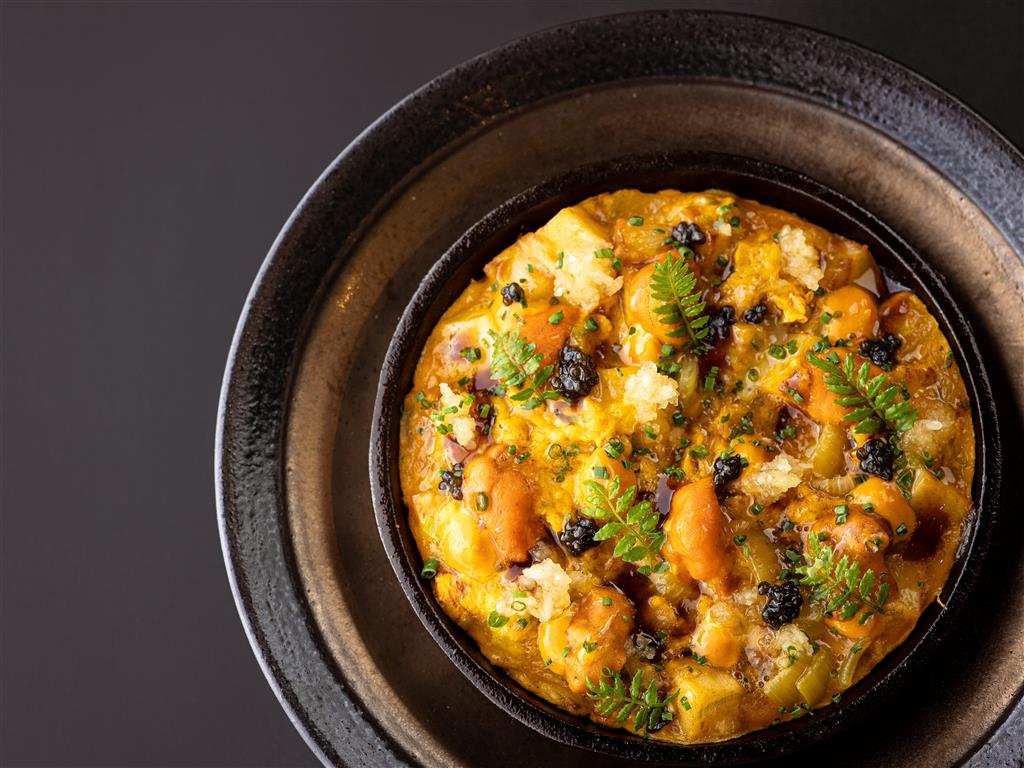 日本把秋天稱為「味覺之秋」,同時也是家人和朋友一起出遊露營的最佳時機,因此,菜單選用融合夏季尾巴的輕盈瓜果,調味強調酸味,讓味蕾感受到秋天的涼爽的到來,10道秋夕菜色來自世界各地的頂級食材,透過品嘗食令的好滋味與摯愛共度美好時光。以不惜成本的食材,讓餐桌上的美食華麗升級,挑逗食客味蕾。法國黃金奧賽嘉魚子醬閃耀著金黃色彩,賦予菜品奢華的風味,台灣紅藜麥像森林中的紅寶石,綻放著熠熠生輝的光芒、日本北海道生食級帆立貝和根室海膽,讓人感受海洋的神秘與豐饒。還有美國prime頂級牛肉,口感細嫩油質豐厚,宛如山林中的豐盛收穫。這些美味食材共同打造了豐富多彩的秋夕菜餚,讓每一位享受美食的客人都能感受到秋天的魅力。