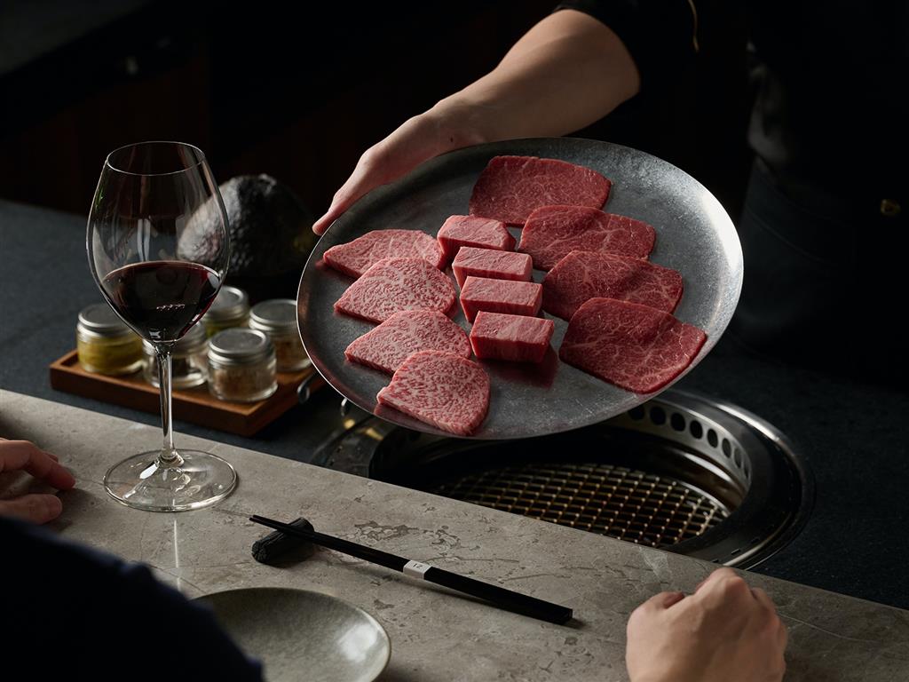 菜色將依照主廚每日嚴選提供當日肉品部位及季節時令更換食材,讓顧客品嚐不同部位獨特風味及油脂香氣,享受口腔中脂肪交錯出的醇厚食感。而每位服務人員都有著自己的一套「百寶箱」,讓燒烤不再只是「代烤」,是讓服務人員化身「燒肉的魔法師」,依據顧客用餐節奏逐道燒烤,在精心設計、充滿巧思的調味之下,與大理石油花交織出最適調味。透過桌前的炙熱爐火,職人現場料理的感官刺激,以及悉心安排、必須親身體驗的用餐環節,堆疊出獨樹一格的燒肉體驗,讓顧客可以無負擔地享受和牛多元部位帶來的口感與豐富層次。