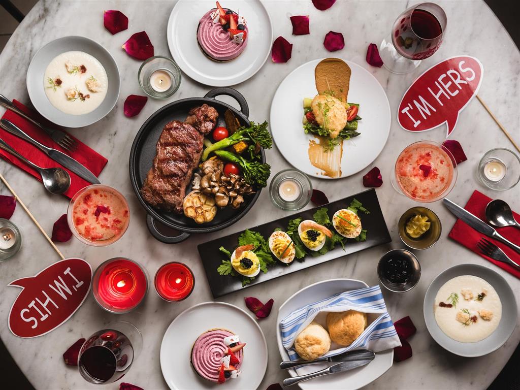 散策在中山北路的林蔭大道,兩人緊握著雙手,在台北中山意舍酒店的Buttermilk摩登美式餐廳共渡浪漫情人夜晚,「情人節雙人套餐」獻上原木碳烤美國肋眼牛排12 oz,兩人你儂我儂分享牛排原封好滋味;前菜有Buttermilk 比司吉、魚子醬惡魔蛋、烤美國大蘆筍佐杏仁醬與茴香湯等經典菜色,打開情人的味蕾,展開豐富的味覺嘉年華!搭配壓軸的甜點「濃情草莓塔」,酸甜的草莓與香濃的卡士達交疊,就像戀人每日的點滴在口中融化,再來一杯莓瑰氣泡酒,星星點點的氣泡在嘴巴作用,如同美味餐點替情人節點綴的小驚喜。
