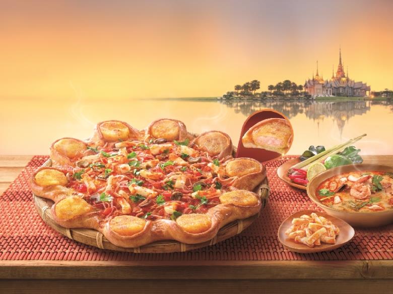 必勝客再出奇招,把米其林指南推薦的泰國國寶湯「冬蔭功」從湯品變身為比薩,還把超人氣泰國菜「金錢蝦餅」鑲嵌成一整圈比薩餅皮,再撒滿上回必勝客讓饕客們為之瘋狂的香菜!泰犯規的美味「冬蔭功蝦餅比薩」正式誕生,同場加映夏日最開胃的「泰式酸甜唐揚雞」。