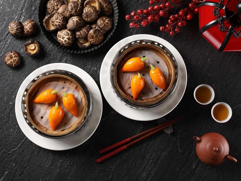 「望月樓」的招牌菜不勝枚舉,像是全部自製、費時費工的荔茸香酥鴨、脆皮燒肉,老菜新做的松露帶子炒鮮奶、荷葉米沙牛小排,吃完意猶未盡的海鮮豆腐煲、柚子片皮手撕雞等。午餐供應的全手工港點、每桌必點的品項則有天鵝蘿蔔酥餅、鮮蝦金魚餃、以及胡蘿蔔造型的牛肝菌素餃。