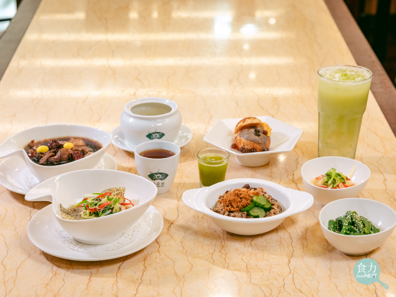 沈有明強調,嚴格挑選出的雞腿肉,要經過蛋白醃製,透過抓醃按摩過程,使雞肉包覆上一層保護膜,「讓肉質水嫩滑順,同時也能保色,不染上仙草的黝黑色調」。此外,加入枸杞跟紅棗自然帶有的甜味,適時平衡了仙草與花旗參的淡淡苦味,佐以白果讓菜餚色系更為協調,並選用過油後散發濃郁香氣的小香菇,讓套膳吃起來不但甘美,還能兼具滋養補氣的功效!