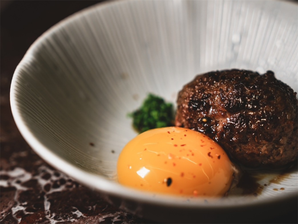 生蛋搭配和牛的組合,堪稱是最邪惡的生雞蛋吃法!隱身台南巷弄、連兩年獲米其林指南肯定的「㕩肉舖Pankoko × 燒肉專門店」期間限定推出「月見醬和牛丸」,特別選用日本頂級和牛製成,濃縮和牛滿滿濃郁肉味搭配輕巧入口的丸子大小,刷上以大武山牧場生食級「幸せ鮮蛋」特調的月見醬汁,反覆高溫的炭火在鮮嫩和牛表面烙上焦香酥脆的印記,一口咬下熱燙肉汁併發著鮮甜,吃過絕對會小心欲罷不能的上癮!