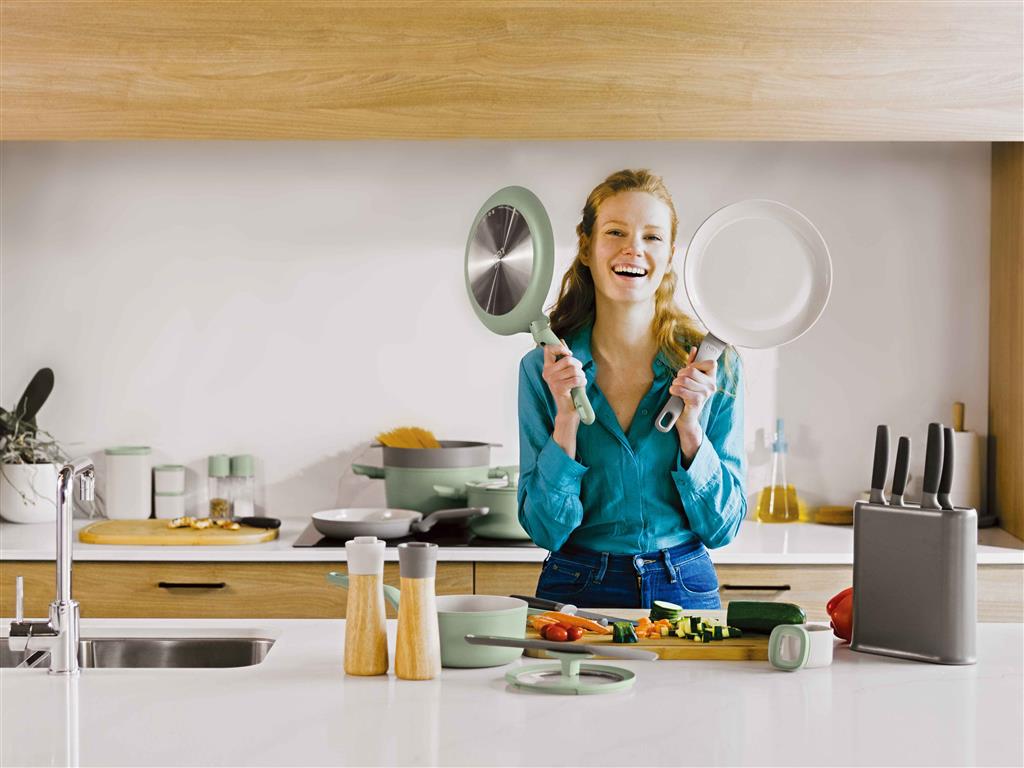 LEO BALANCE不沾鍋系列共推出「月霧灰」及「鼠尾草綠」兩款質感莫蘭迪色系,低飽和度的色彩可完美融入各式居家風格,為生活增添情趣!更貼心考量清潔便利性,鍋內的無鉚釘設計不易藏汙納垢,方便好清洗!並同步推出鍋鏟、系列刀具、肉錘、多功能矽膠蒸籠濾網等實用的餐廚配件,此外也有馬鈴薯壓泥器、義大利麵勺等西式料理配件,中西式料理都能全方位包辦,輕鬆帶來一道道健康美味的佳餚,享受烹飪的幸福時光!