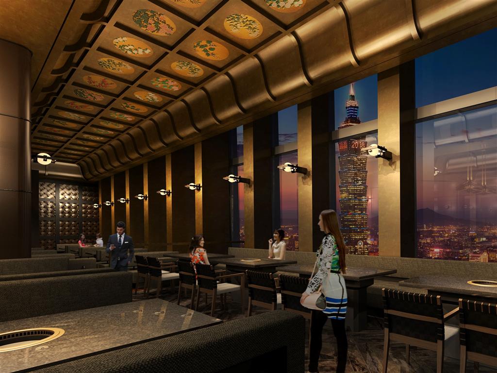 座落在標高180公尺、位於47樓的「和牛47」為全台灣最高的燒肉餐廳,擁有眺望台北地標-「101大樓」的絕佳位置,偌大的落地窗將台北美景一覽無遺。席設92席,店內以日本明治、經歷大正至昭和時代,象徵新時代的文化創新時期為設計風格,將日本傳統文化經過幕末維新的西洋文化洗禮,相互交融昇華成獨樹一格的「日西合璧」浪漫情懷。挑高空間以日本木造町屋的傳統色彩為基底,注入閃閃發光的光澤感,打造和洋兼容的華麗設計,醞釀出安穩厚重的金碧輝煌,牆上以日本竹箔編織而成的馬賽克花紋塑造現代風格,搭配吊燈點綴,一走進就有種穿越時空的錯覺,沉浸在古典懷舊的氣息中。