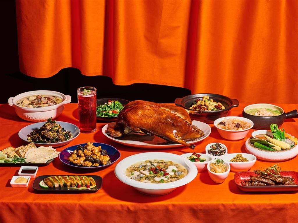 「招牌片皮鴨」以香料襯托鴨肉食材清爽鮮甜的本味,鴨隻在特製風乾室低溫控濕風乾24小時以上,並經過三段火侯烤製,每天鮮烤鮮出限量供應。皮酥肉滑的琥珀色功夫烤鴨,搭配經典三味吃法,做為春節聚餐桌上的主角再適合不過!