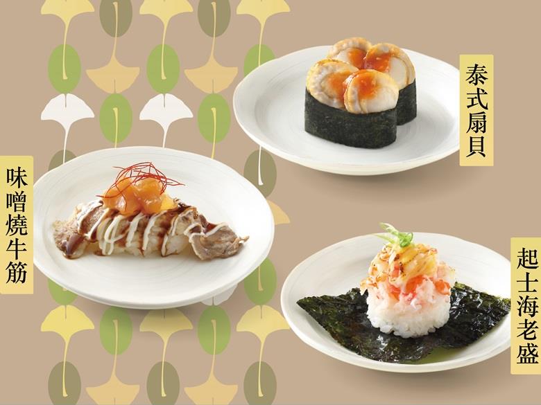「爭鮮迴轉壽司」於2019年9月9日至2019年11月3日推出「秋收知味」三款新品:味噌燒牛筋、泰式扇貝、起士海老盛。