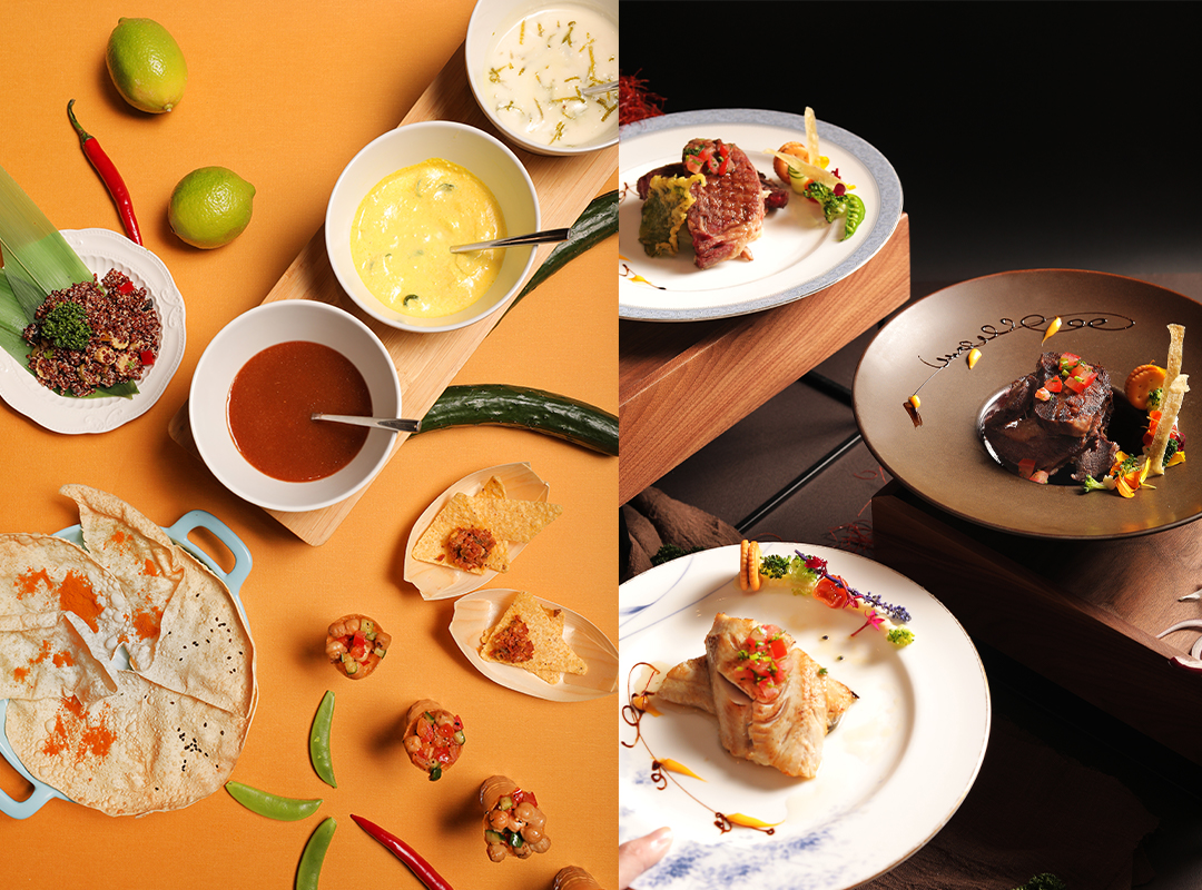 致敬北印度菜系入口的溫和感,特製馬沙拉咖哩醬與芒果醬、黃瓜優格、檸檬優格一應俱全,入列「異國選品」區還原印度傳統餐桌簡單 DIY的手作烤餅趣味,而同為異國料理的「南法鄉村」菜品首推法國最受歡迎的養生香米-庫斯庫斯所製成的馬賽淡菜庫斯庫斯,與鷹嘴豆、燉菜蔬食 DIY盛盤,用舌尖品嚐穿梭到南法小鎮!還不過癮的賓客以$200起的價格可單點加購主廚特製主菜,包含「舒肥美式肋眼牛排」、「勃根地紅酒牛肉」、「日式薄鹽烤花魚」、「西班牙紅椒伊比利豬」等六道魅力料理可選,一次滿足各種胃袋大小!