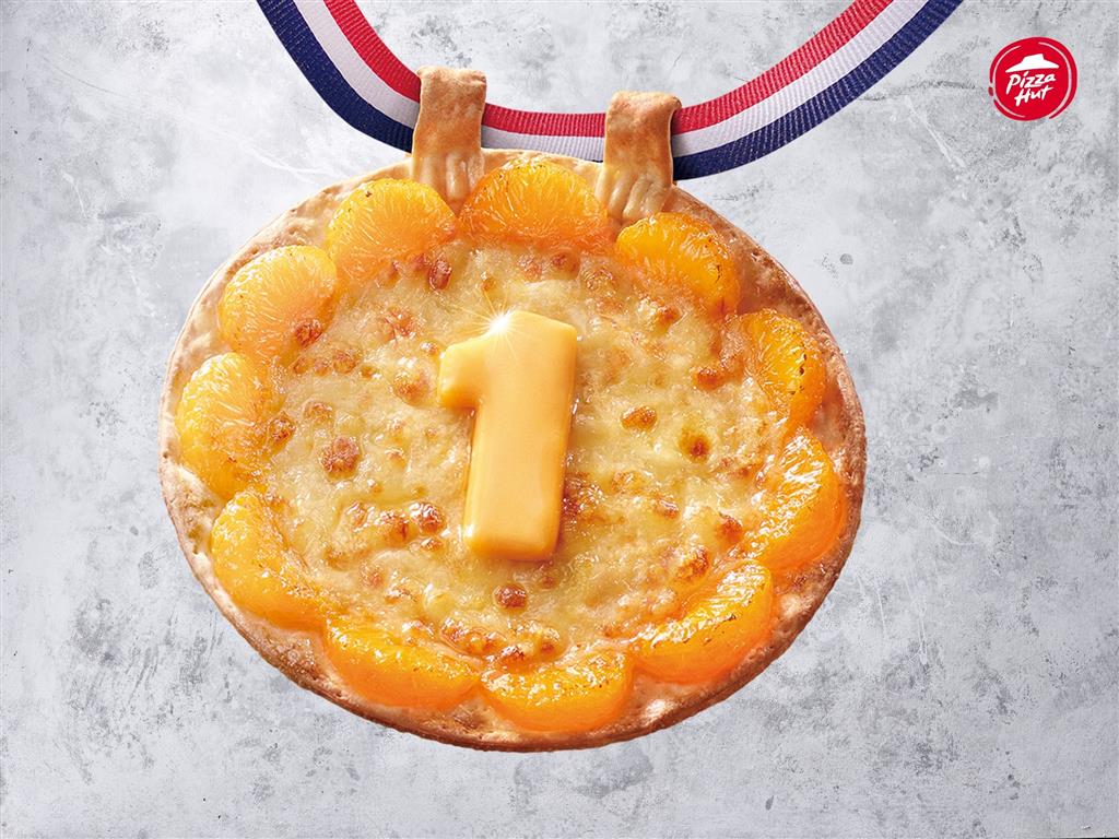 選手奪金時興奮地咬著金牌是每次賽事最動人的畫面之一,這次「必勝五環奪金饗宴」裡也有真的可以咬的「超桔金牌比薩」,而且還很好吃!由象徵大吉大利的桔瓣與金黃色的香濃起司交織而成,祝福選手們能夠締造一「桔」棒的傳奇戰績!