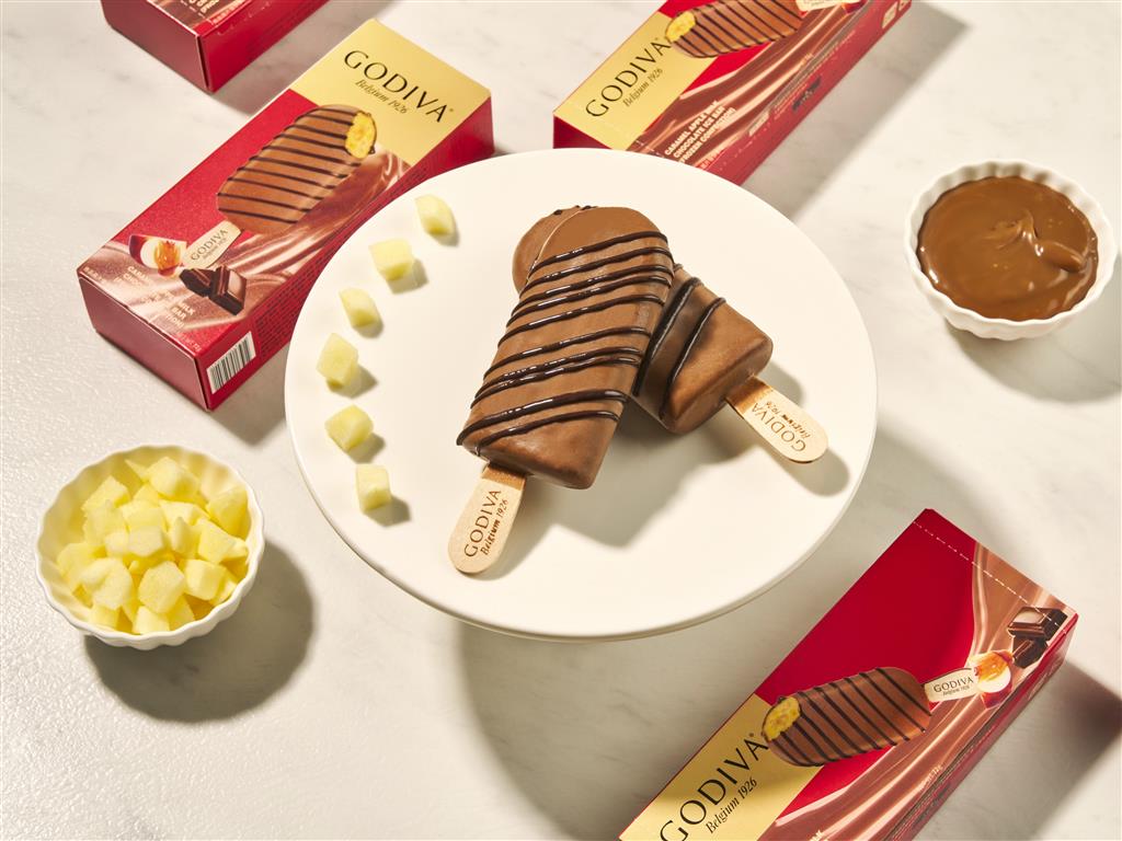 GODIVA推出夏日「焦糖蘋果牛奶巧克力雪糕」,發想自歐系甜點蘋果派,嚴選富士蜜蘋果丁融合香醇焦糖白巧克力,創造出甜蜜微酸與濃醇巧克力的豐富層次。2024年6月10日起於7-ELEVEN獨家開搶,2024年6月12日至6月25日更可參與國際冰品節抽抽樂活動,有機會以0元帶回家!