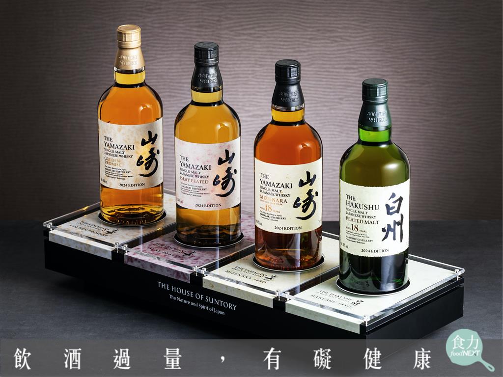 三得利打造四款各具特色單一麥芽威士忌酒款,「山崎、白州職魂之作2024」加上台灣「限定收藏座」,即日起於全球與台灣市場上市。(圖片來源:三得利提供)