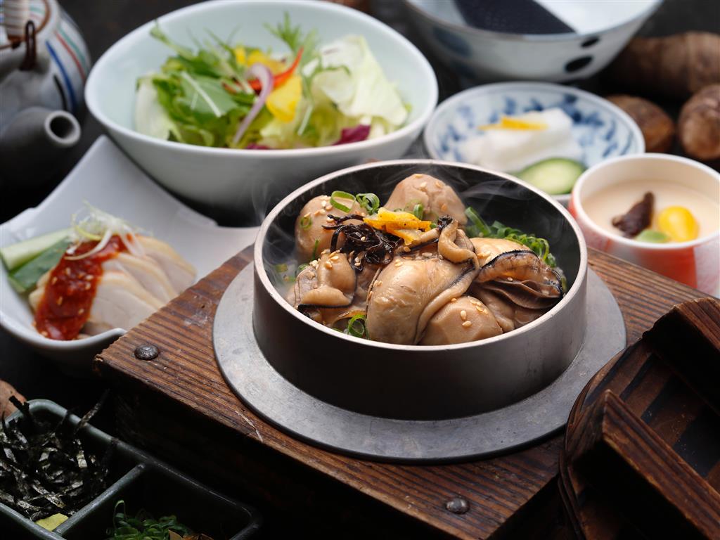 以「原食炭魂」為理念的鳥丈爐端燒,集結日本鳥丈擁有鳥丈炭火焼きとり、鳥丈海鮮屋、月の家3個不同料理風格型態的店鋪,在台以碳烤、釜飯等各式料理主。本次將鹿兒島寒鰤魚與廣島牡蠣兩大食材,分別用碳烤與炊蒸風格,各別為食材帶來極緻美味。以最單純,卻又講究功夫的碳烤,帶來碳烤寒鰤下巴佐莎莎醬,將寒鰤魚下巴以直火碳烤,保持肉質鮮嫩,外皮酥脆,再搭配碳烤糯米椒、玉米筍與香菇鮮甜時蔬,佐以自家製莎莎醬品嚐,清爽不油膩。而廣島牡蠣,則以可四吃的釜飯料理呈現,纖細的高湯炊蒸出廣島牡蠣的鮮甜與飽滿,再添入澱粉質較低的里芋、牛蒡等食材,使柚香牡蠣里芋釜飯套餐具高雅風味又有飽足感。
