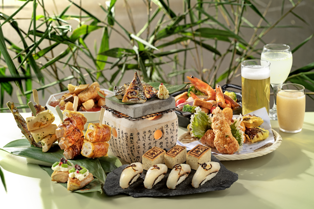 日式燒烤看似簡單,其實大有學問,料理時間過猶不及都會影響口感,考驗掌控火侯功力,推薦午、晚餐皆有供應的「剝皮辣椒鯖魚燒」、「馬告風炙烤雞真丈湯葉捲」、「雪花牛肉蒟蒻燒」,鯖魚油脂豐厚、肉質鮮嫩,是常見的燒烤食材,碰上台灣特有的剝皮辣椒,激盪出「剝皮辣椒鯖魚燒」,微辣甘甜配上飽滿海味,獨特風味令人驚艷;馬告具檸檬與香茅香氣,有「山林黑珍珠」之稱,本季限定的「馬告風炙烤雞真丈湯葉捲」,料理長將Q彈花枝漿拌入雞絞肉,捲入味道高雅的湯葉捲,烤至金黃酥脆,清爽雞絞肉配上馬告辛香,保證一吃上癮;「雪花牛肉蒟蒻燒」選用風味濃厚、油花細緻的牛腹肉,鋪上高湯熬煮後的蒟蒻塊,是道口感及健康兼具的料理。