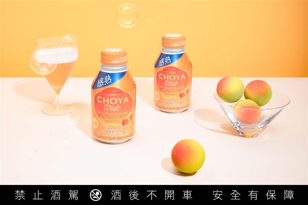 「The CHOYA果泥氣泡梅酒」使用與契作農場合作的高品質「完熟紀州南高梅」為原料,果味醇厚、香氣豐盈。「完熟」如同台灣話所說的「在欉紅」,意指果實在樹上剛好成熟的狀態並自然掉落,由於這種梅果極其嬌嫩、難以保存,CHOYA在採收後透過獨特工法將梅果急速冷凍鎖住新鮮度,製成完熟南高梅果汁及果泥。新品在本格梅酒中加入這些果汁及果泥,使整體梅果味變得更加濃郁奢華,滑順的果泥及細緻的氣泡豐富了口感,是今年秋天絕不能錯過的美味酒款。
